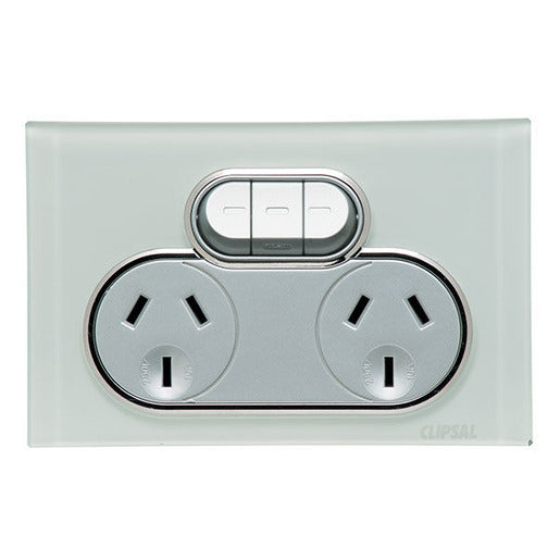CLI4025X-OM : Clipsal Saturn Glass Range Double Power Point / GPO + Extra Switch 10amp - Ocean Mist